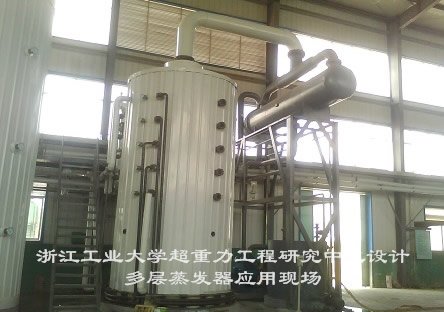 工作原理:物料在多层蒸发内逐级向下流动,每一级设置加热元件。物料在蒸发过程中平推流流动,不返混,停留时间短而均匀,减少了产品分解;每一级液层高度在50㎜~300㎜之间,属于浅液层汽化,加热温度低;通过设计不同的级数,保证物料中轻组分除尽。